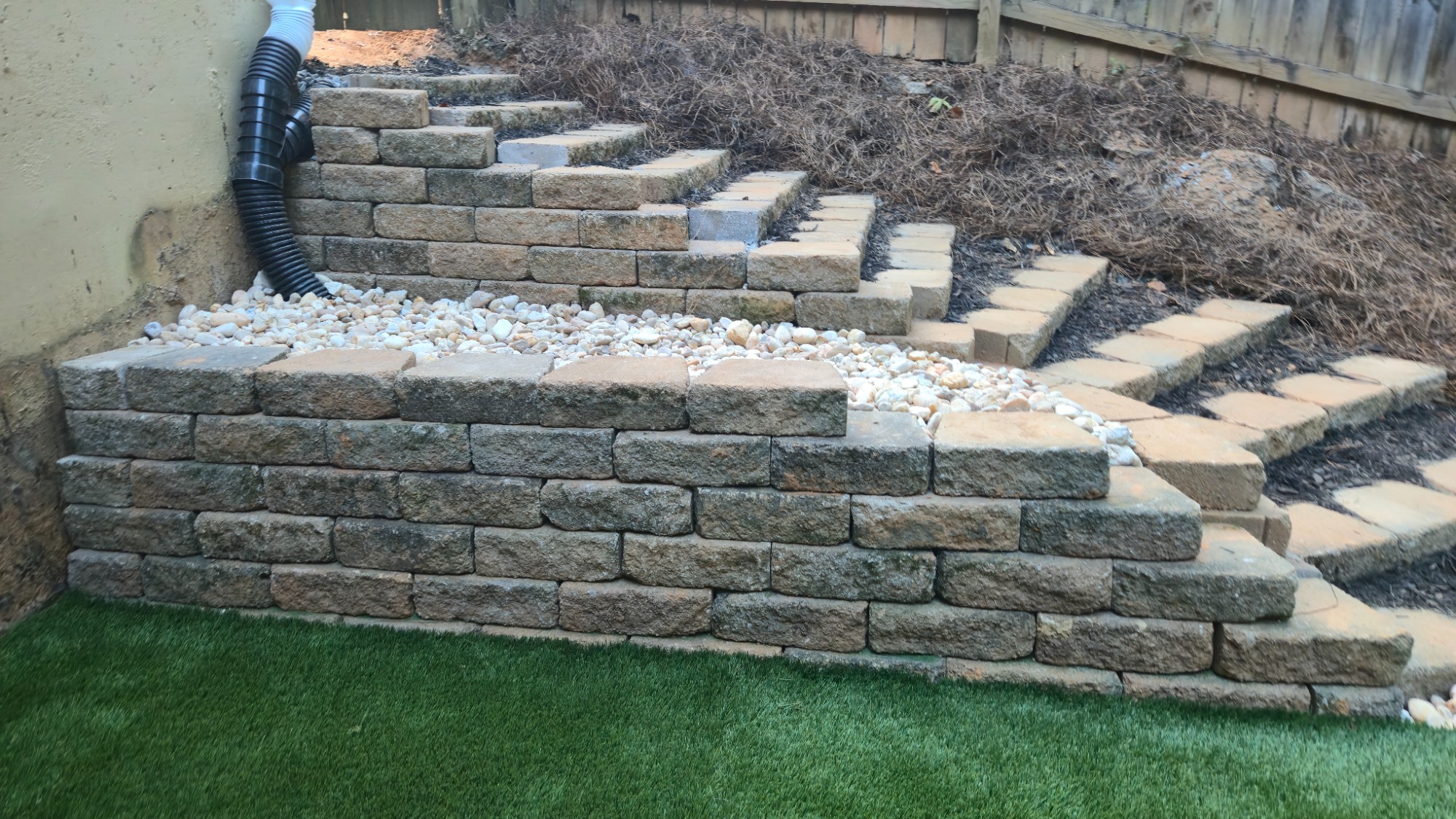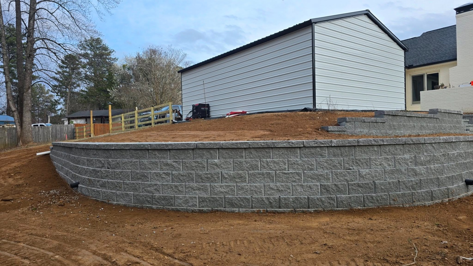 We specialize in retaining walls with various options that fit your budget perhpas: Timbers(Regular or Railroad Cross Ties), Regal Stone Block, or Cinder Block.
